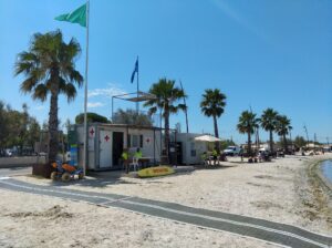 Un fauteuil Tiralo est également mis à disposition, ainsi qu’un barnum offrant une aire de repos ombragée, réservée exclusivement aux personnes à mobilité réduite.